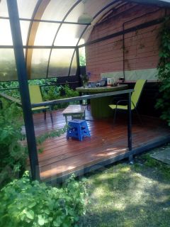 Продаётся усадьба на 12 совмещенных сотках в СНТ " Нерехта -2 " Владимирской области. Основной дом двухэтажный 60 кв.м. построен из брёвна, облицовка кирпичная, печное отопление. В хорошем, жилом состоянии. На одном участке с ним есть навес для машин 4*5 ( металл плюс поликарбонат ), сарай с двумя входами, обложен кирпичом. Уличный туалет. На 2-ом участке: летний, щитовой дом ( кухня-столовая ) 25 кв.м. с мансардой и пристроенной террасой 4*3.5 ( металл плюс поликарбонат ). Ангар 6*5 используется как дровник. Душевая комната ( есть водонагреватель ) также обложена кирпичом, второе отделение для стиральной машины ( постирочная ). На участке также есть теплица 3*5, колодец для технической воды. Центральный газ проходит по границе участка с 3-х сторон. Электричество - 15 кВ. Оба участка огорожены металлопрофилем высотой 180 см. Два въезда с разных сторон, 3 калитки. Декоративные столбы из кирпича по фасаду забора. Участки ухоженные, есть плодово-ягодные кустарники, декоративные туи, эксклюзивные ели, растущие вниз, грибы. 3 -й дом от леса. СНТ " Нерехта-2 " находится в лесной, санаторной зоне в 10 км от г. Ковров. Подъезд хороший , асфальт. В пешей доступности пляжная зона реки Клязьма. 1 взрослый собственник. Свободная продажа. Наследство по завещанию более 3-х лет.