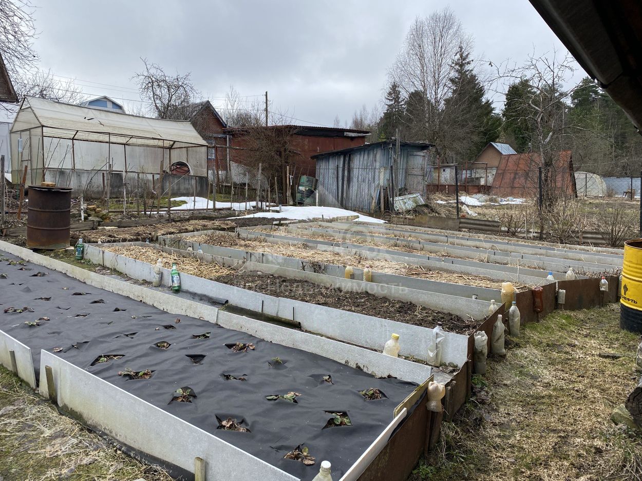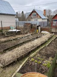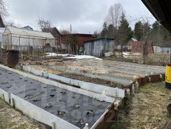 Участок- 4 сотки, ровный. На участке есть вода для полива, хозблок и туалет. Участок обработан, сформированы грядки, высажена клубника. Участок огорожен забором (сетка-рабица), есть ворота для въезда и парковки автомобиля. На участке растут плодовые деревья и кустарники: яблони, жимолость, малина, крыжовник, вишня, смородина.