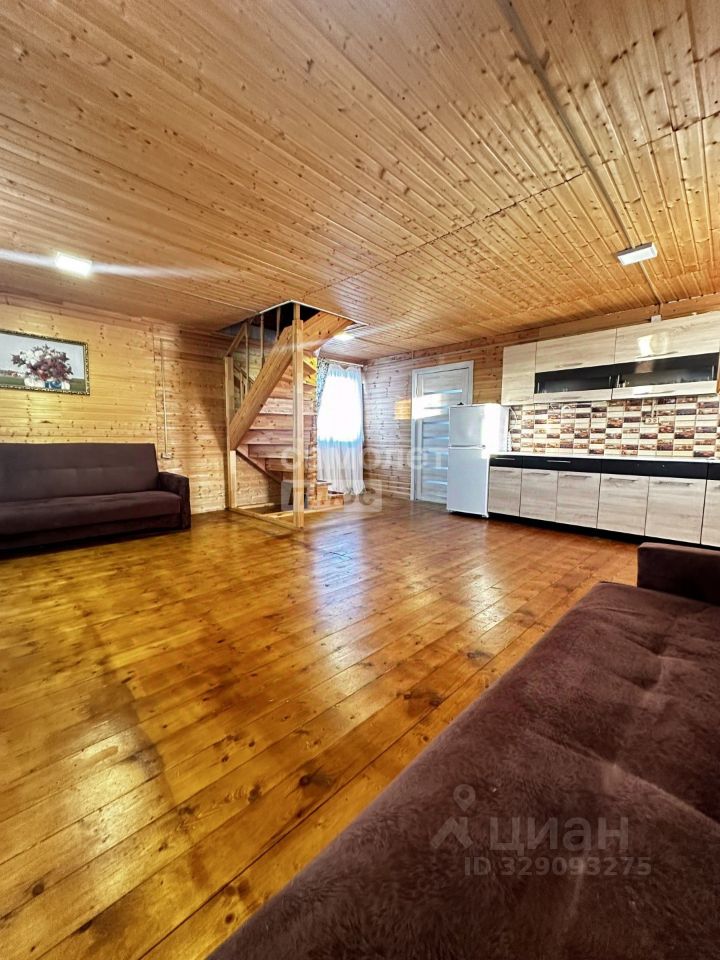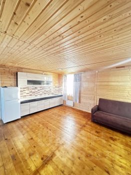 В доме на 1м этаже, большая кухня-гостинная 32,6 кв.м, с/у+ ванная комната, прихожая.