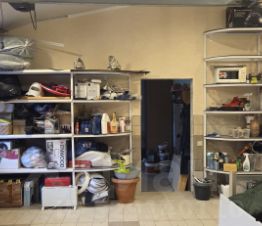 Гараж разделён на 3 зоны. Зона для хранения и машины, зона для ремонтных работ, котельная .
