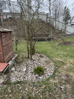 Земельный участок 10 соток, на участке хозблок, туалет, молодые деревья и кустарники: малина, ежевика, смородина, яблоня, туи, ель. Участок огорожен со всех сторон забором, въездные ворота. Участок в конце улицы, можно спокойно оставлять машину у ворот, никто не ездит. Дом и земельный участок в собственности, межевание участка есть.