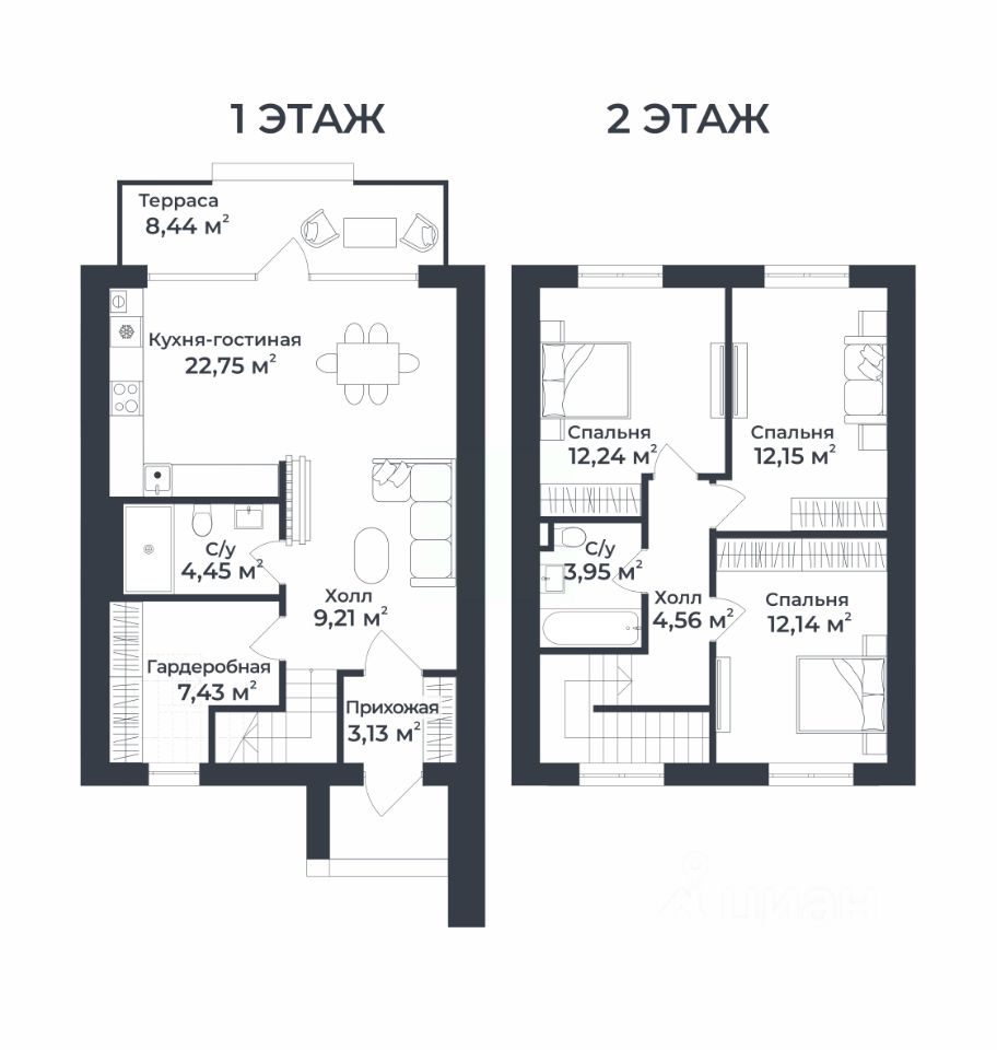 Продается ГОТОВЫЙ двухэтажный таунхаус площадью 94,54 кв.м. с участком в Доброграде по адресу: ул. Удачная, дом 22, корпус 2.