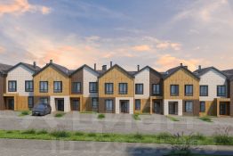 Экстерьер таунхауса выполнен с использованием современных природных материалов.