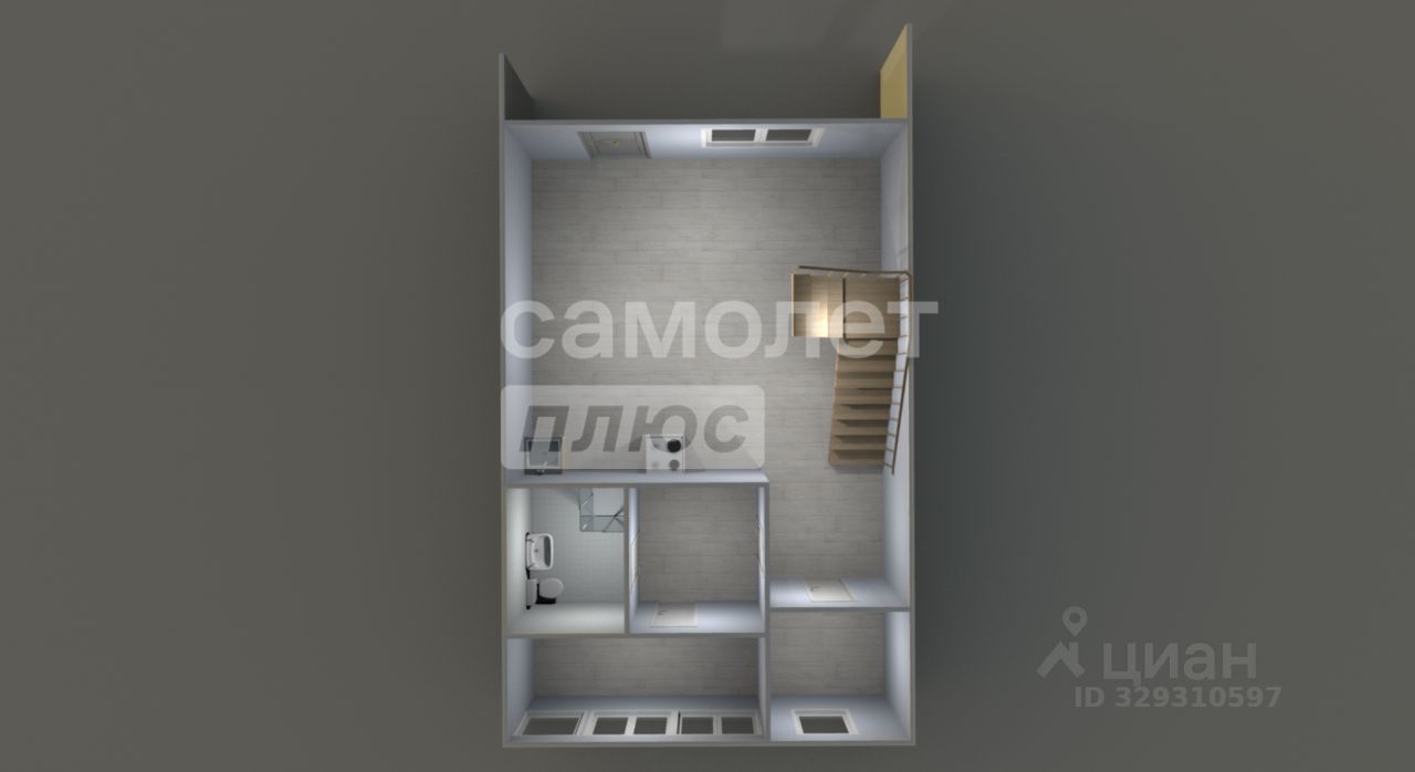 Планировка: Кухня-гостиная, санузел и техническое помещение на первом этаже. Три изолированные спальни и второй санузел на втором этаже. Одна из спален со своим санузлом и гардеробной .
