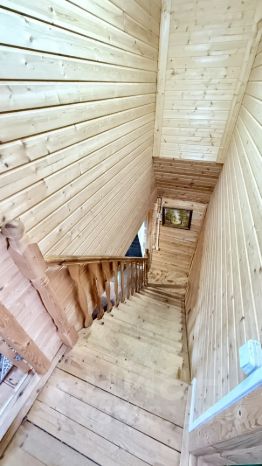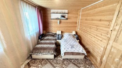 Вход в дом осуществляет с одной стороны. Внутренние помещения дома обшиты вагонкой. На первом этаже дома располагается прихожая, кухня-гостиная, совмещенный санузел (туалет, раковина, дешевая кабина и накопительный водонагреватель). С первого на второй этаж ведет деревянная лестница. На втором этаже располагаются две изолированные жилые комнаты. В доме установлены окна ПВХ. Под домом расположен погреб. Дом прекрасно подойдет для круглогодичного проживания, оформлен как жилой, с возможностью прописки. Кадастровый номер дома - 33:01:001230:3598.