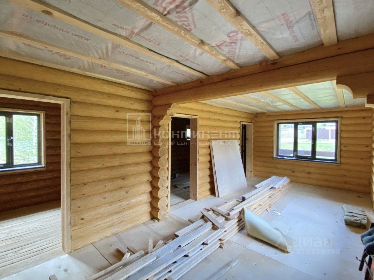 Материал постройки - оцилиндрованное бревно из северного леса.