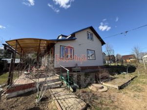 Двухэтажный дом (общая площадь 100 м2) возведён на ленточном фундаменте. Материал стен - блоки. Фасад снаружи утеплён и обшит сайдингом. Крыша - металлочерепица. Окна - стеклопакеты. Год завершения строительства - 2013.