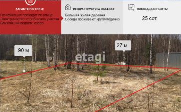 Большая жилая деревня.Если смотреть на карте ,то видно что улицы идут во все стороны ,как лучики.Участок находится на краю одной из таких улиц ,вокруг лес и дома по соседству напротив.Столбы Электричества стоят на границе участка.Тишина необыкновенная ,ни одного городского звука.Деревня газифицированная.Вода исключительно хорошего качества.В деревне есть колодцы.