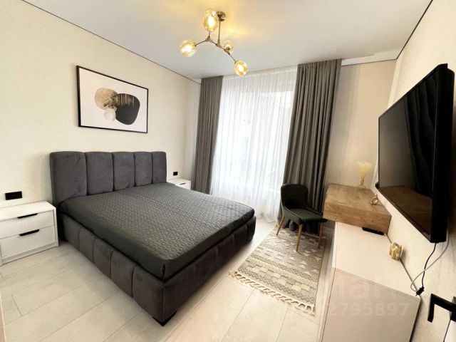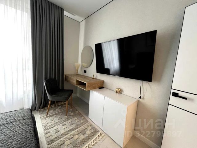Квартира с евроремонтом, полностью готова к заселению. Студия обставлена мебелью как в жилой зоне, так и на кухне. Здесь есть все необходимое для комфортной жизни: холодильник, стиральная машина, телевизор. Ванная комната оснащена ванной, санузел совмещён. Высота потолков составляет 2,6 метра, что добавляет ощущение простора. Есть застеклённая уютная лоджия для отдыха 5 м2.