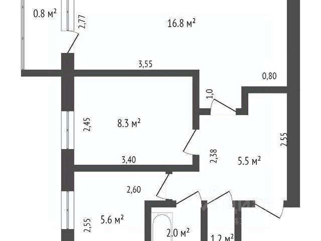 От года, 65 000 ₽ + 8 ₽ комм. платежи (без счётчиков), комиссия 80%, залог 30 000 ₽