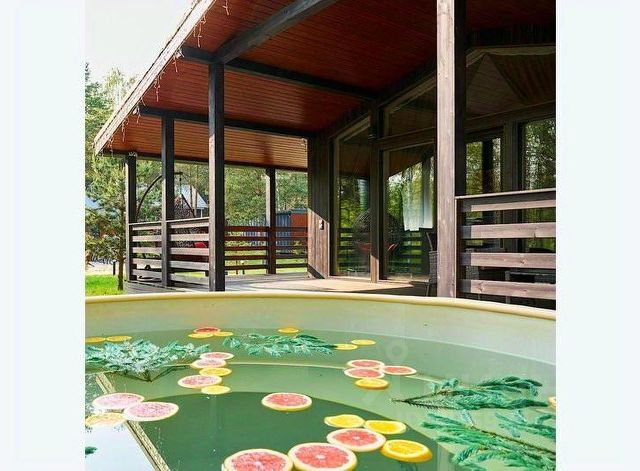 На территории дома: - мангал, декоративны прудик, лавочки; - зона парковки для 1 автомобиля.