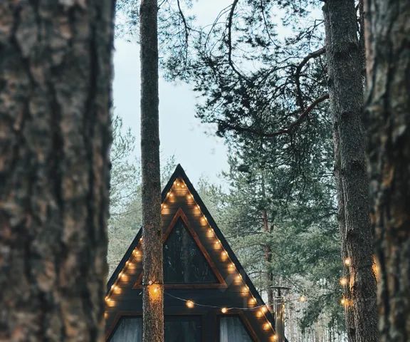 A-frame дом, в котором созданы все привычные городскому жителю условия: