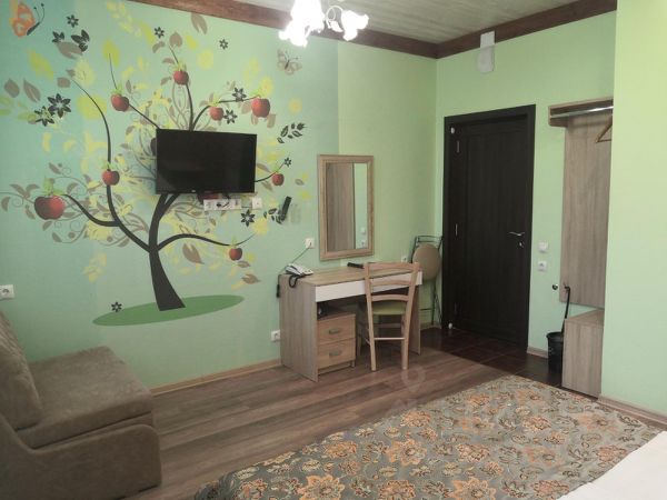 В спальне царит роскошная кровать king-size, словно приглашающая погрузиться в безмятежный сон, а во второй комнате расположился диван, создающий атмосферу уюта и комфорта. Каждая комната очаровывает своим неповторимым характером благодаря тщательно подобранной антикварной и винтажной мебели, хранящей в себе истории прошлых эпох. Современные телевизоры и бесшумные кондиционеры гармонично вписываются в интерьер, обеспечивая максимальный комфорт проживания. Ванная комната представляет собой образец продуманности и функциональности, где каждая деталь оборудования подобрана с особой тщательностью для вашего удобства и наслаждения водными процедурами. На территории отеля находится ресторан, баня (оплачивается отдельно). Завтрак входит в стоимость проживания. Дети до 4 лет размещаются бесплатно.