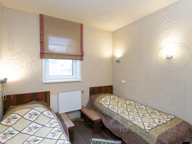 Номер с двумя раздельными кроватями, прикроватными тумбами, ковровым покрытием и шифоньеров с зеркалом в полный рост. Удобства и телевизор на этаже. Сервис: - Ежедневная уборка номера - Места для курения - Аптечка первой помощи - Церковь/храм - Парикмахерская/салон красоты - Оборудованная общая кухня - Настольные игры - Настольный теннис.