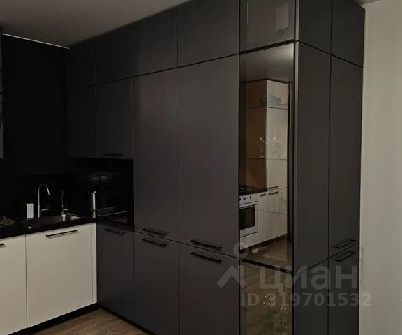 Кухня с лаконичными серыми фасадами, встроенной техникой и чёрным смесителем — это пространство, где эстетика встречается с функциональностью.